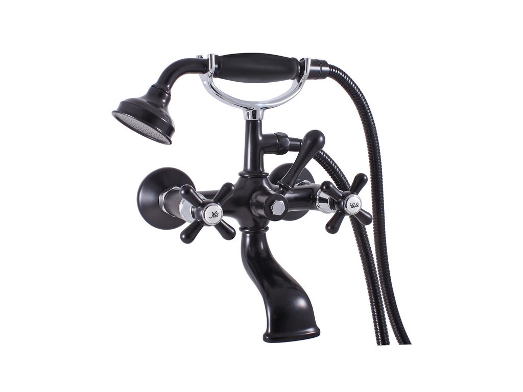 Vodovodní baterie vanová nástěnná s vidlicí na odkládání sprchy a se sprchou.