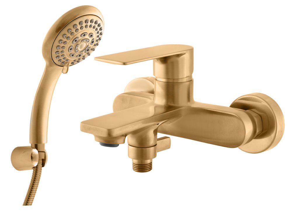 - Vodovodní baterie vanová nástěnná se sprchou a pevným kovovým držákem.