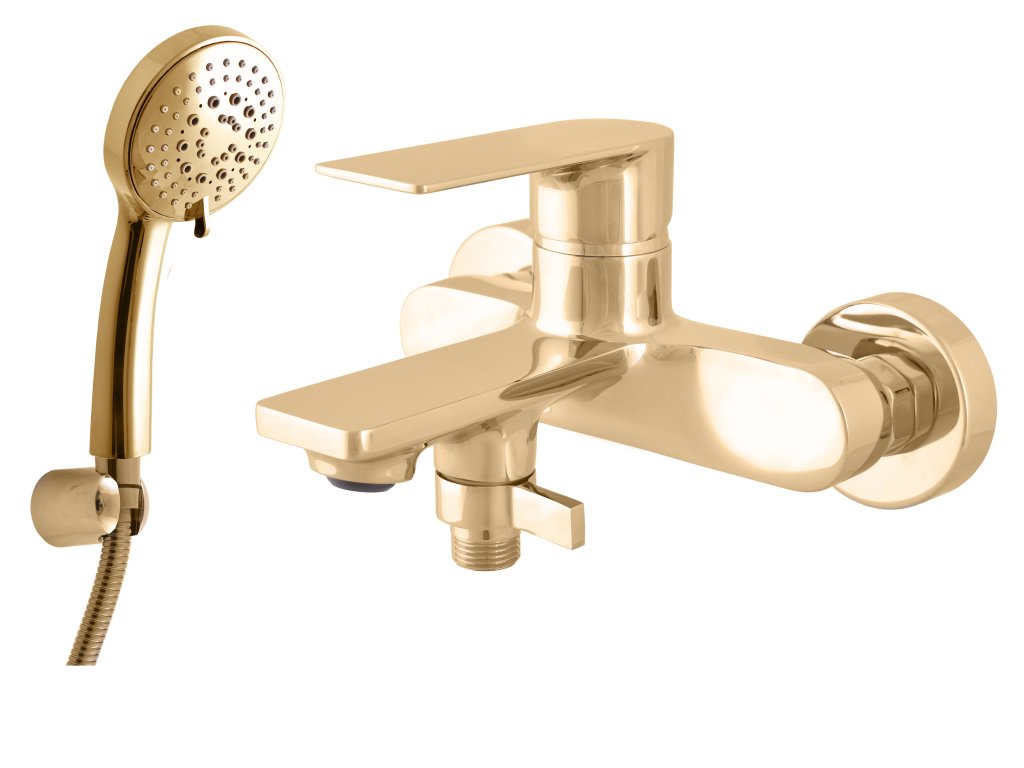 - Vodovodní baterie vanová nástěnná se sprchou a pevným kovovým držákem.