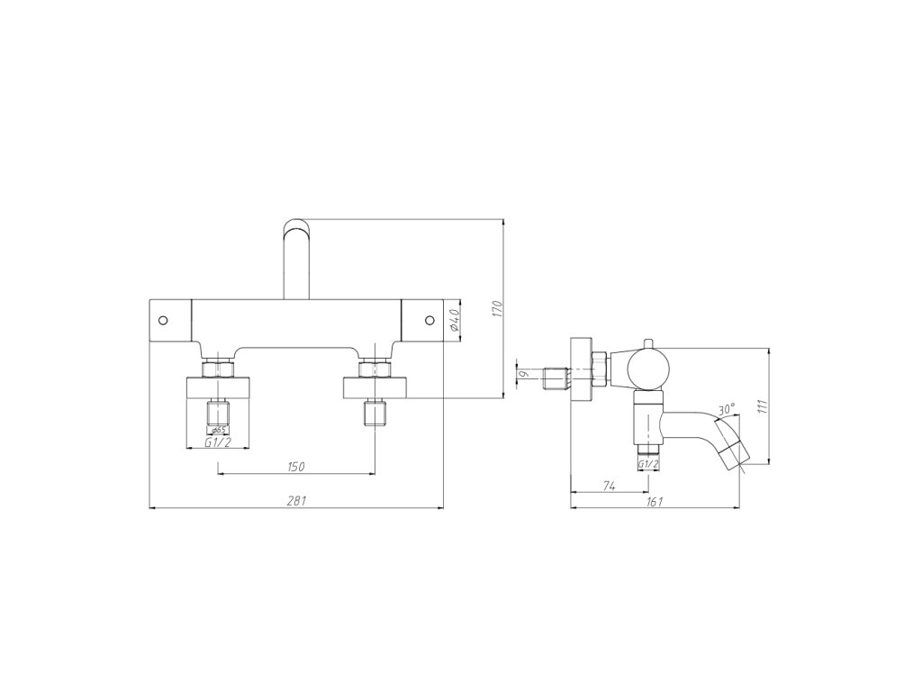 Mereo Termostatická nástěnná vanová baterie bez příslušenství