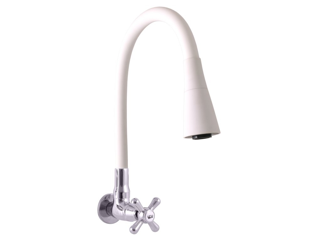 Vodovodní baterie nástěnná na jednu vodu s flexibilním otočným ramínkem se sprchou.